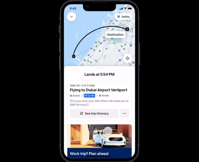 Uber анонсировал запуск электрического аэротакси в Дубае совместно с Joby Aviation. Забронировать перелёт на летательном аппарате Joby Aviation пользователи смогут в приложении Uber. В стоимость будет включен проезд на обычном такси до места вылета и с места приземления до конечной точки маршрута. Сервис начнёт работать в 2026 году.