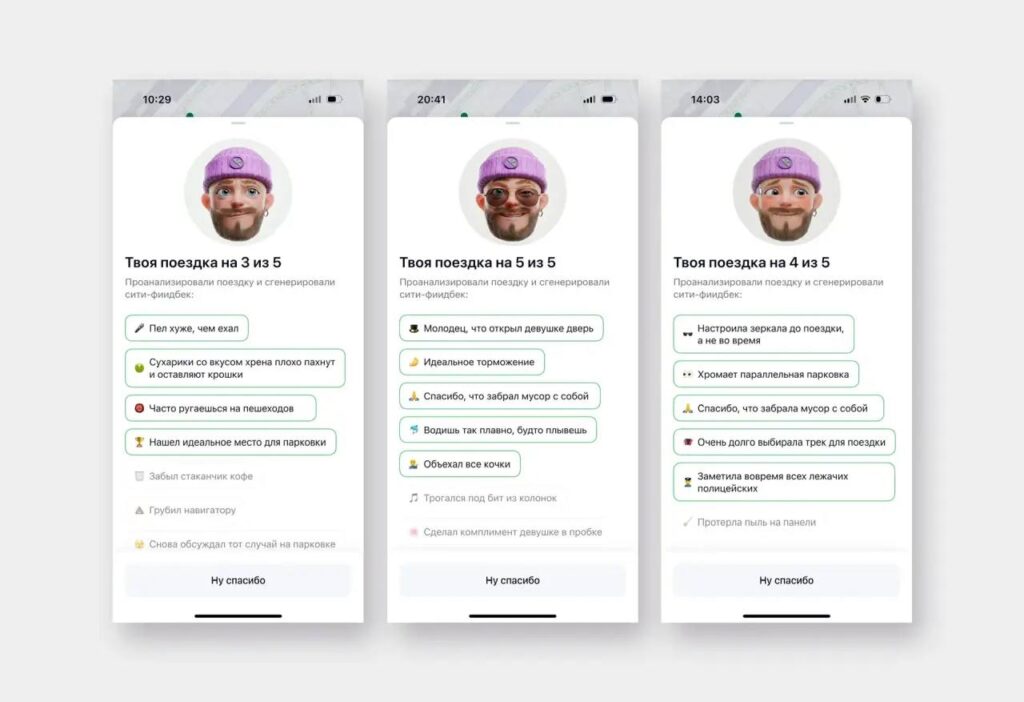 ИИ проанализирует более 10 параметров: манеру езды, парковку, оставление мусора в салоне и даже музыкальные вкусы пользователя. Пока проект работает в тестовом режиме и не будет влиять на рейтинг в приложении, однако в будущем разработчики планируют внедрить Сити-фиидбек в профиль пользователя.