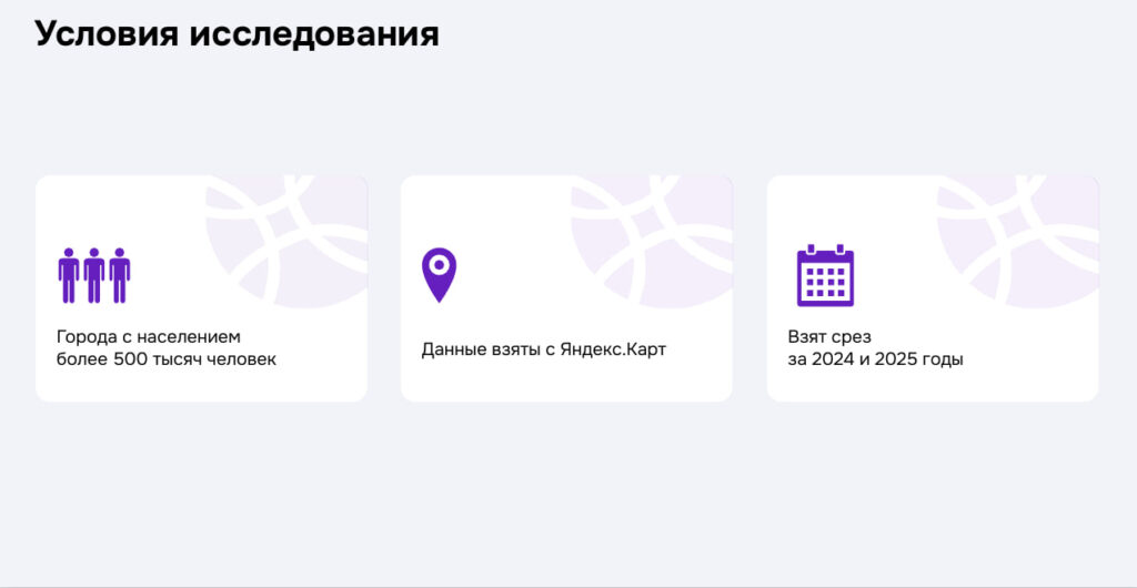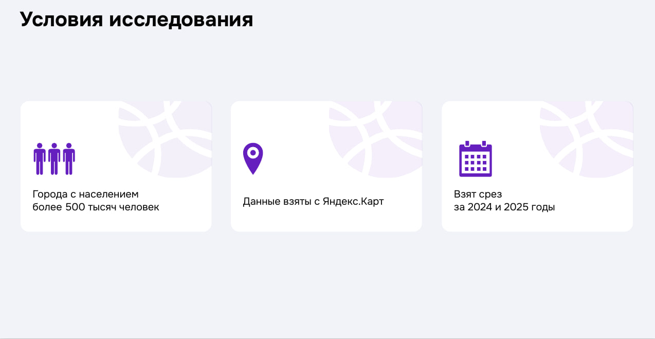 Компания транспортного консалтинга InnovaTransport совместно с Ассоциацией операторов микромобильности и сервисом «Яндекс Go» представили ежегодное исследование развития велоинфраструктуры в российских городах с населением свыше 500 тысяч человек. Аналитики изучили данные платформы «Яндекс.Карты» за 2025 год.