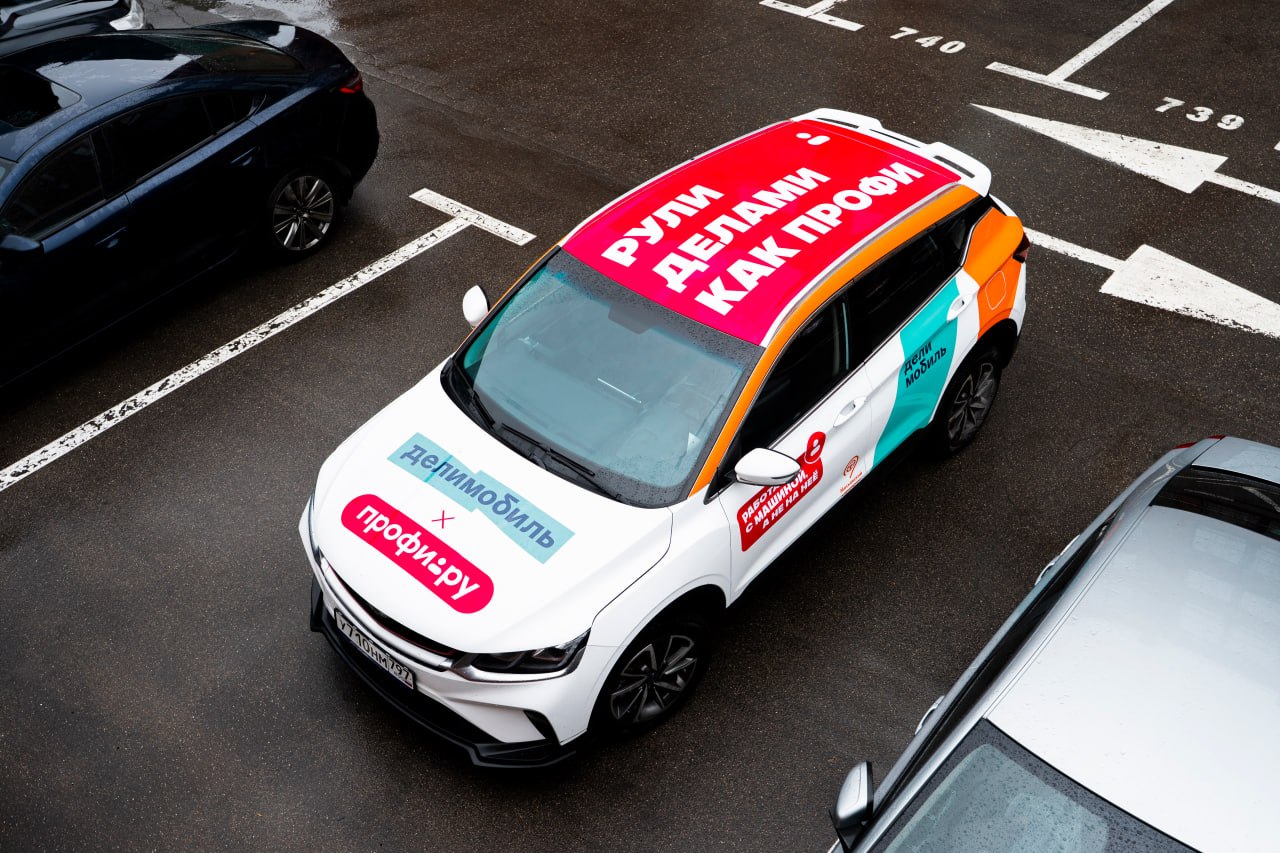 Делимобиль и Профи.ру поддержали проект рекламой на своих ресурсах, а часть московских автомобилей получила фирменное оформление в коллаборации с Профи.ру.