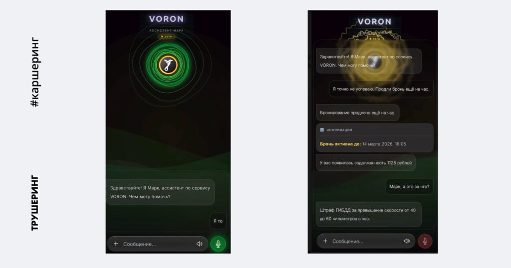 В мобильном приложении каршеринга VORON появился голосовой ИИ-ассистент