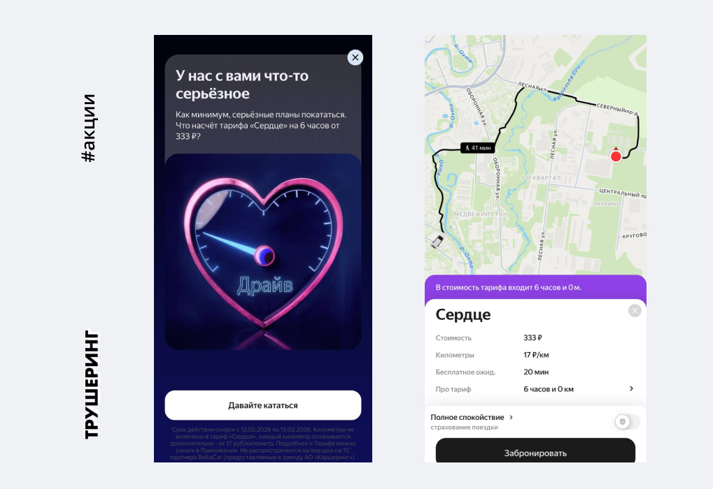 Спецтариф «Сердце» на 6 часов от 333 рублей у каршеринга Яндекс Драйв