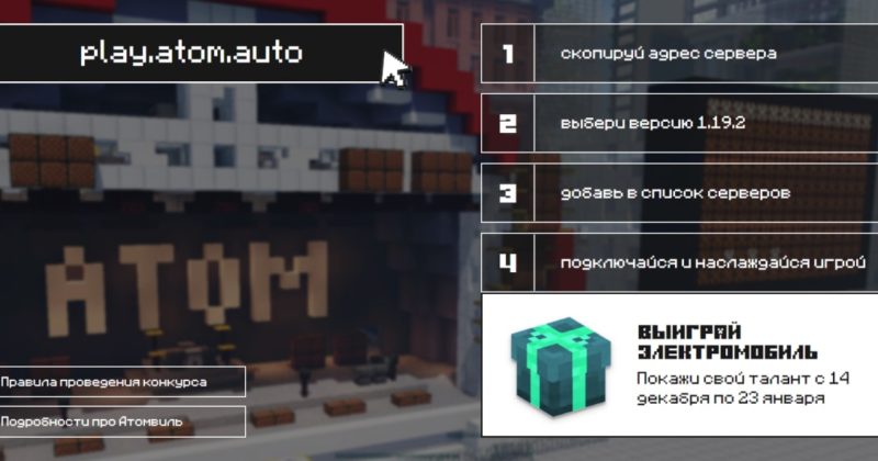 Ситидрайв теперь в Майнкрафте. А еще можно выиграть NFT от АТОМ