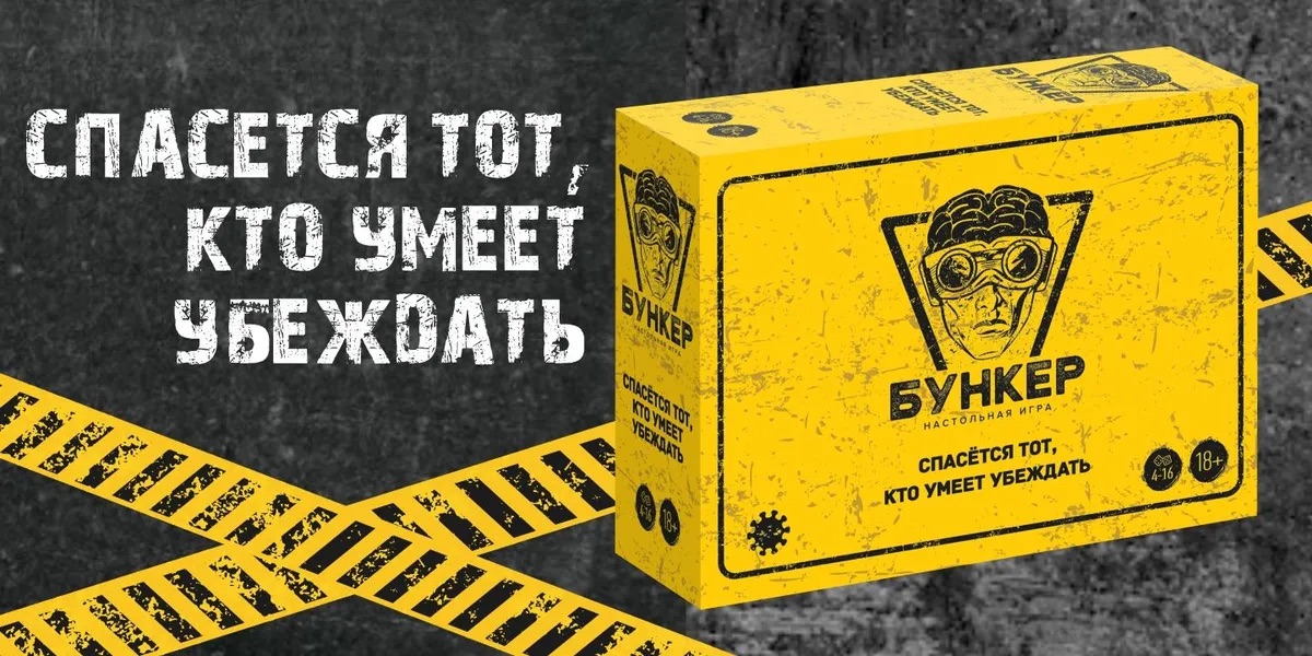 Это дискуссионная игра для компании от 4 до 16 человек. Каждый участник получает случайный набор карт, который определит его пол, возраст, профессию и другие черты. Немного о сюжете: наступил конец света, и чтобы спастись, нужно попасть в бункер. Однако места на всех не хватит. Задача игрока — убедить остальных в том, что его персонаж будет полезен в убежище.
