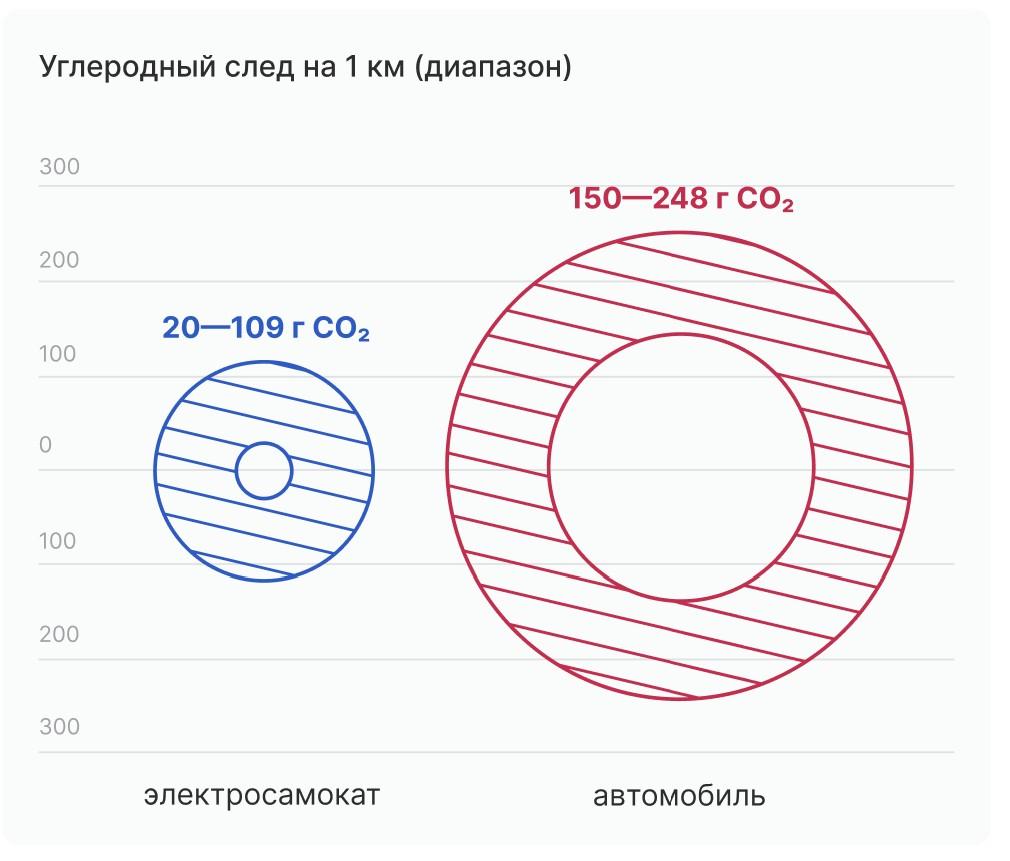 1,6 тыс. тонн углекислого газа — потенциальное сокращение выбросов в Москве за 10 месяцев 2025 года. Расчёт основан на данных о 32 тыс. ежедневных поездок на самокатах вместо автомобиля.