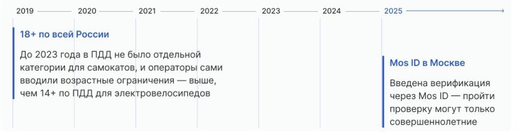 В Москве арендовать электросамокаты могут только совершеннолетние пользователи. Чтобы повысить безопасность, в столице усилили проверку пользователей. С весны 2025 года ввели верификацию через Mos ID — она подтверждает возраст, позволяет установить личность в случае ДТП и блокировать нарушителей во всех сервисах проката электросамокатов.